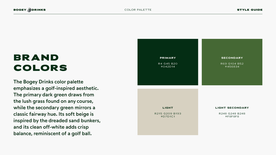 I developed the brand identity for Bogey Drinks, a golf-inspired beverage company set to launch in Q3 2025. From designing the logo to developing branding guidelines and packaging, I carefully integrated elements of the game while balancing fun and sophistication. The result is a cohesive and dynamic brand identity that sure to make a strong debut.